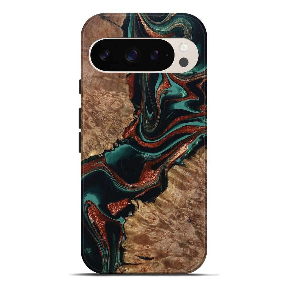Our Live Edge cases are made from an amazing combination of stabilized wood burl and colored resin. Our stabilization process hardens the wood to protect against cracks and breaks. We do every step of the process at our shop in Northern Indiana. Perfectly fits the Pixel 9 Pro XL.