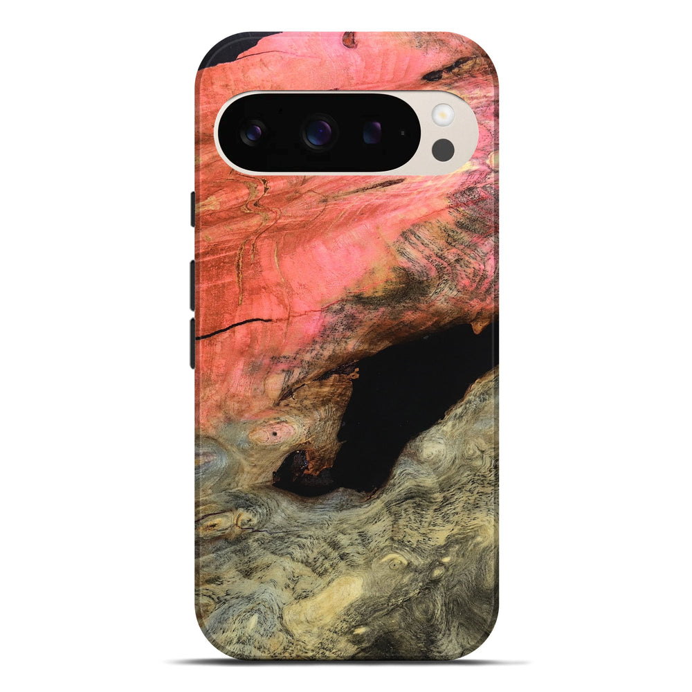 Our Live Edge cases are made from an amazing combination of stabilized wood burl and colored resin. Our stabilization process hardens the wood to protect against cracks and breaks. We do every step of the process at our shop in Northern Indiana. Perfectly fits the Pixel 9 Pro XL.