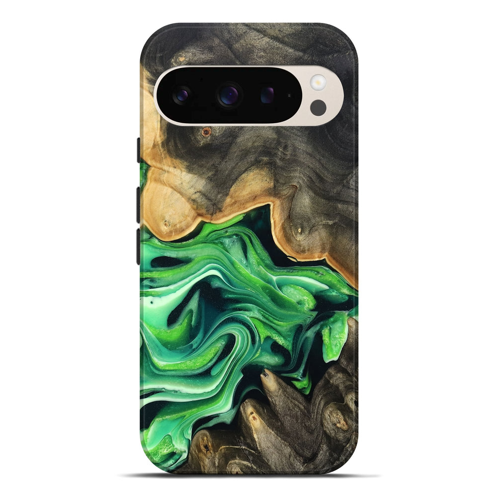 Our Live Edge cases are made from an amazing combination of stabilized wood burl and colored resin. Our stabilization process hardens the wood to protect against cracks and breaks. We do every step of the process at our shop in Northern Indiana. Perfectly fits the Pixel 9 Pro XL.