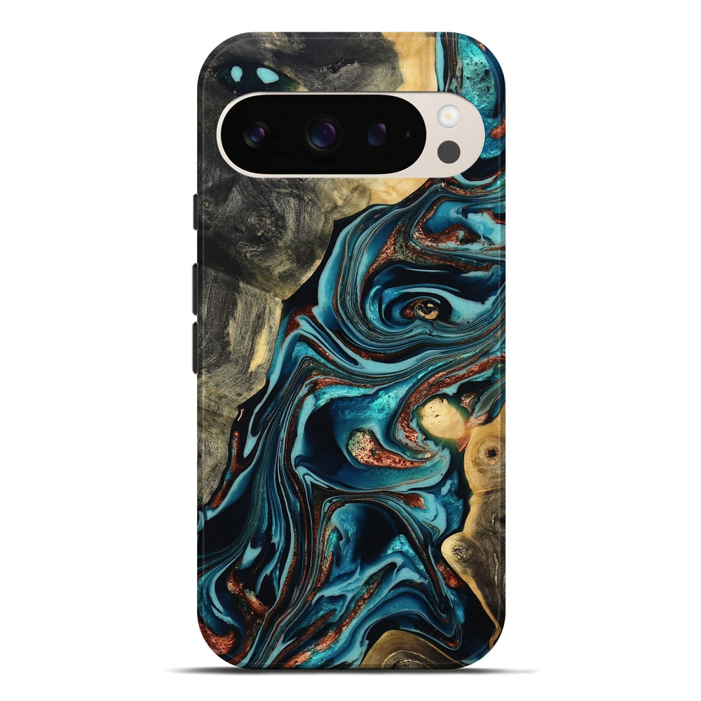 Our Live Edge cases are made from an amazing combination of stabilized wood burl and colored resin. Our stabilization process hardens the wood to protect against cracks and breaks. We do every step of the process at our shop in Northern Indiana. Perfectly fits the Pixel 9 Pro XL.