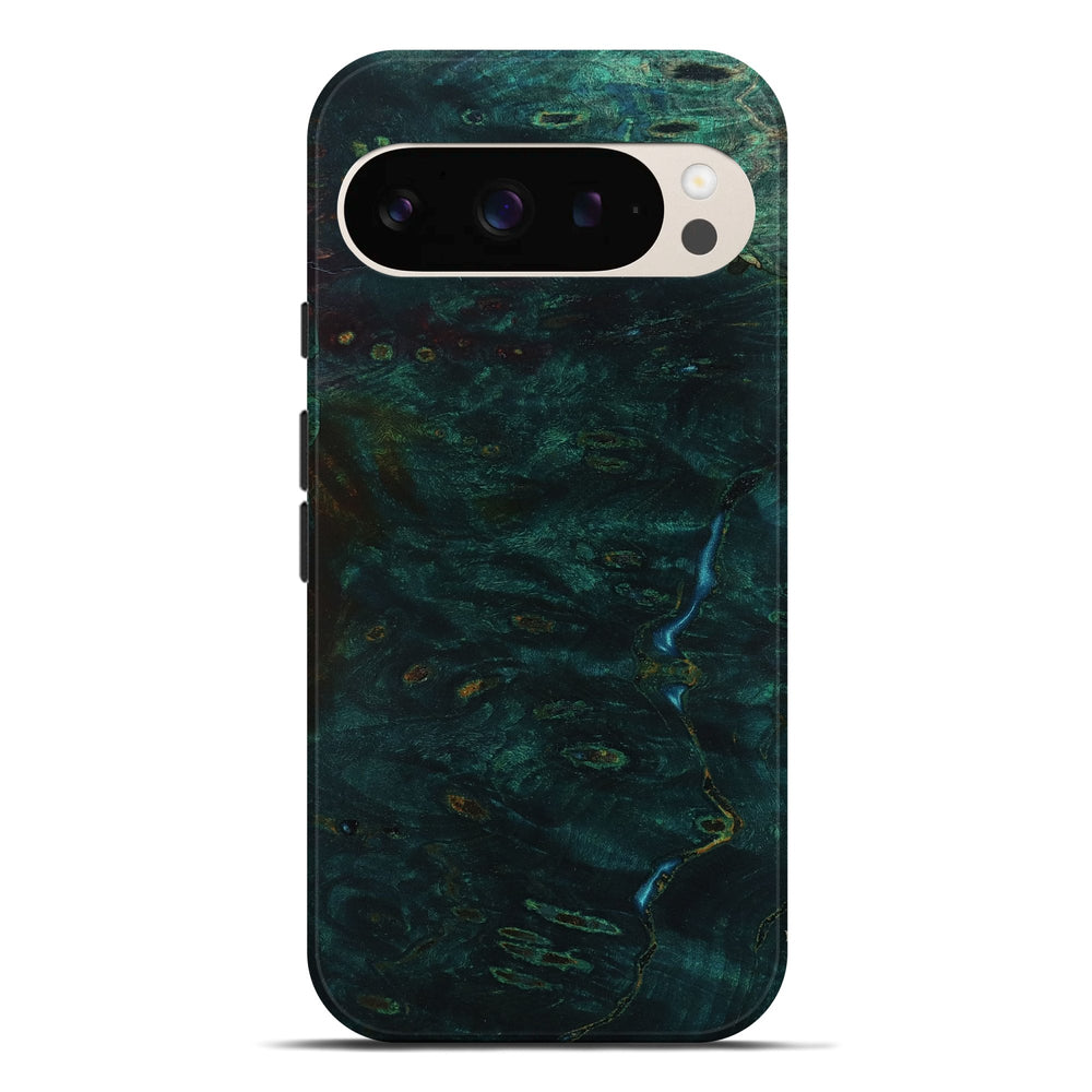 Our Live Edge cases are made from an amazing combination of stabilized wood burl and colored resin. Our stabilization process hardens the wood to protect against cracks and breaks. We do every step of the process at our shop in Northern Indiana. Perfectly fits the Pixel 9 Pro XL.