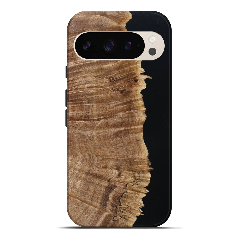 Our Live Edge cases are made from an amazing combination of stabilized wood burl and colored resin. Our stabilization process hardens the wood to protect against cracks and breaks. We do every step of the process at our shop in Northern Indiana. Perfectly fits the Pixel 9 Pro XL.