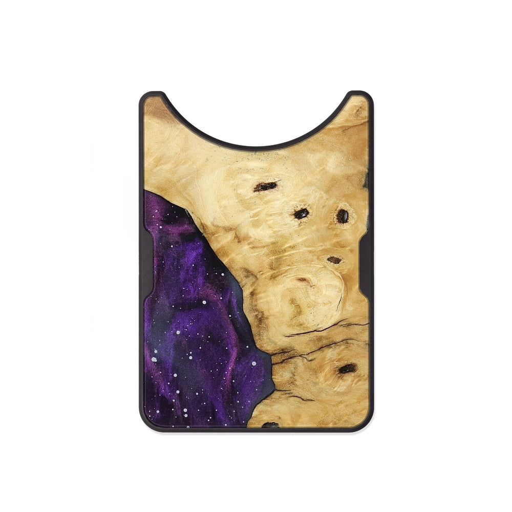 Alison has warm, light brown tones with unique dark spots scattered throughout. The flowing purple background creates a striking contrast, adding depth to the wood's natural beauty.