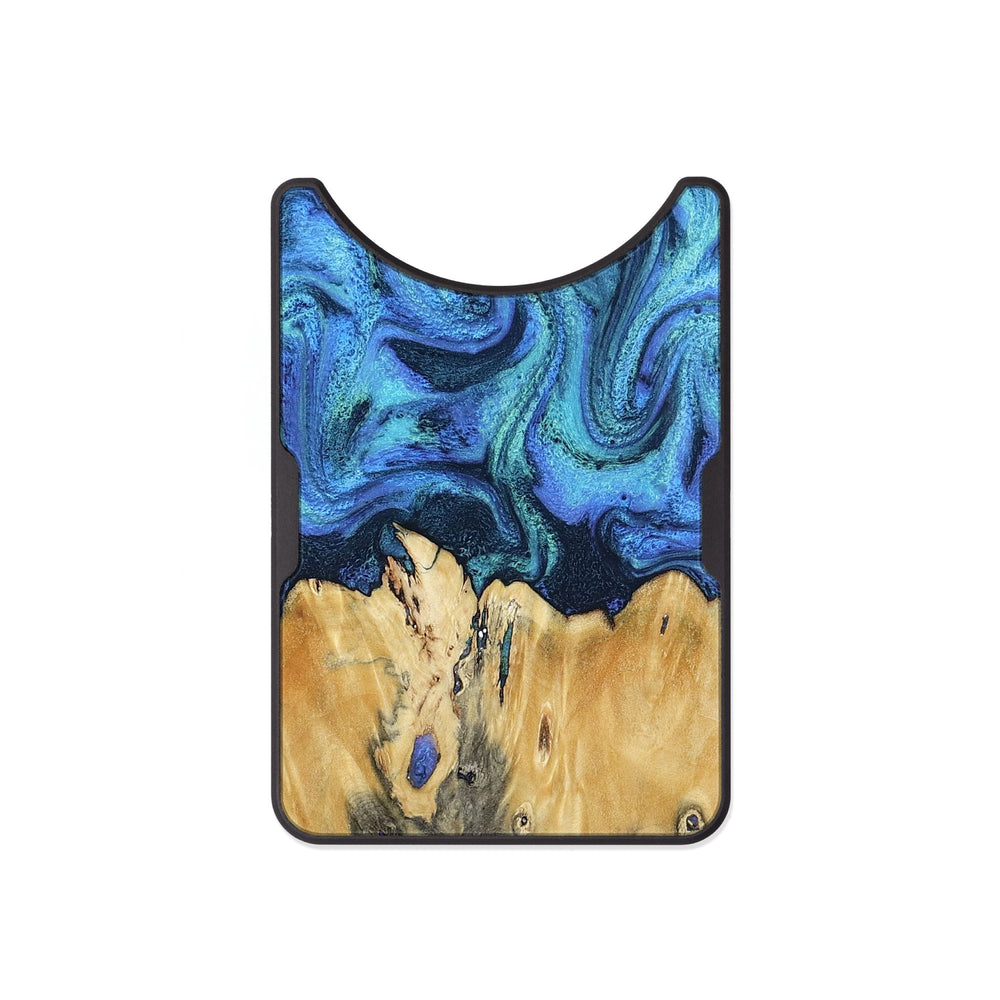 Brandyn has beautiful swirls of blue and green, contrasting with warm, natural wood tones. The design features a unique pattern that draws the eye with its flowing shapes.
