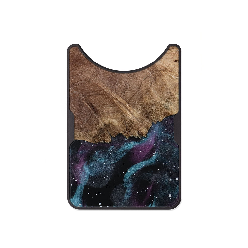 Colette has warm, rich shades of maple wood with a smooth texture. Its unique grain pattern contrasts beautifully with vibrant, swirling colors that resemble a night sky.
