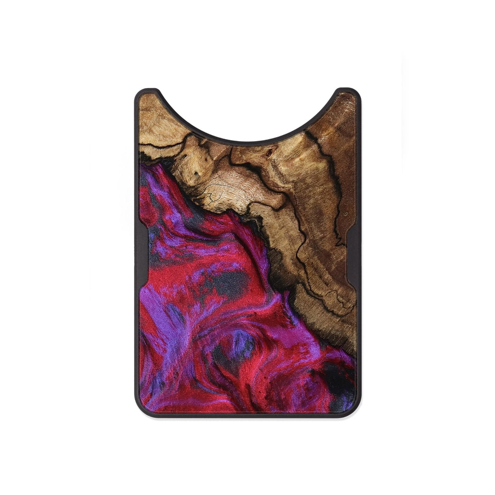 Debbi has a smooth maple wood surface with warm, rich tones. It showcases a vibrant swirl of reds and purples, creating an eye-catching pattern.