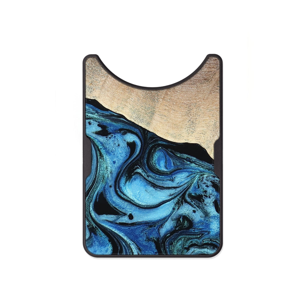 Elza has beautiful, swirling shades of blue that create a lively pattern. The rich Buckeye wood at the top adds warmth and contrast to the vibrant colors below.