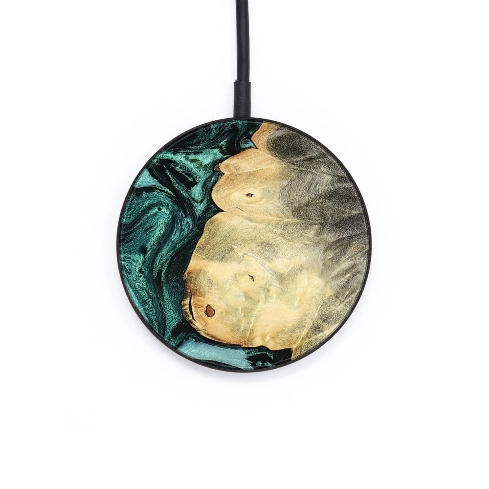 Perfectly simple, MagSafe compatible, USB-C, 1 of a kind Wireless Qi charger. CNC machined aluminum body. Every Wood+Resin inlay is unique and made at our shop in Elkhart, Indiana.
