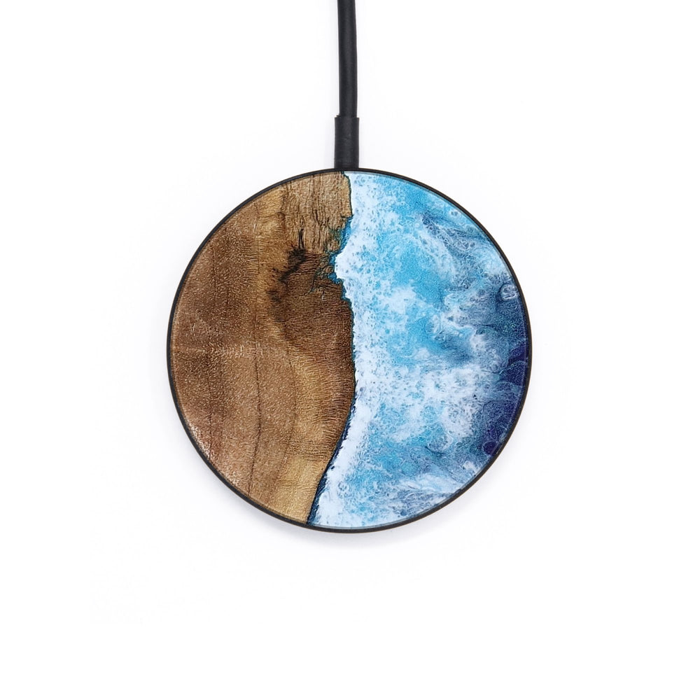 Perfectly simple, MagSafe compatible, USB-C, 1 of a kind Wireless Qi charger. CNC machined aluminum body. Every Wood+Resin inlay is unique and made at our shop in Elkhart, Indiana.