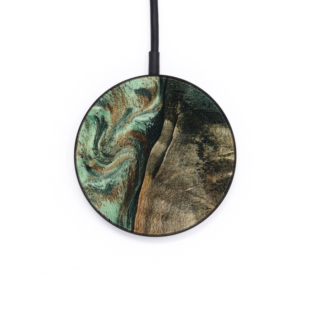 Perfectly simple, MagSafe compatible, USB-C, 1 of a kind Wireless Qi charger. CNC machined aluminum body. Every Wood+Resin inlay is unique and made at our shop in Elkhart, Indiana.