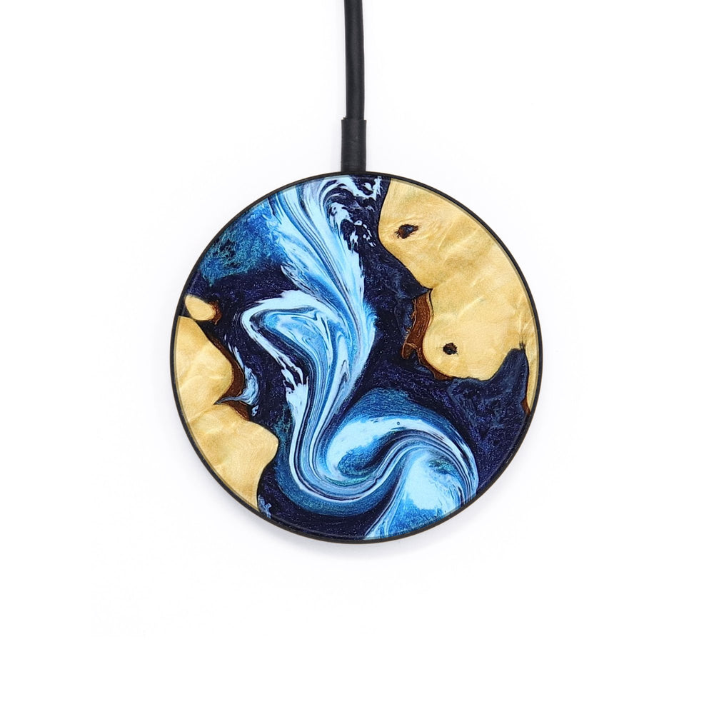 Perfectly simple, MagSafe compatible, USB-C, 1 of a kind Wireless Qi charger. CNC machined aluminum body. Every Wood+Resin inlay is unique and made at our shop in Elkhart, Indiana.