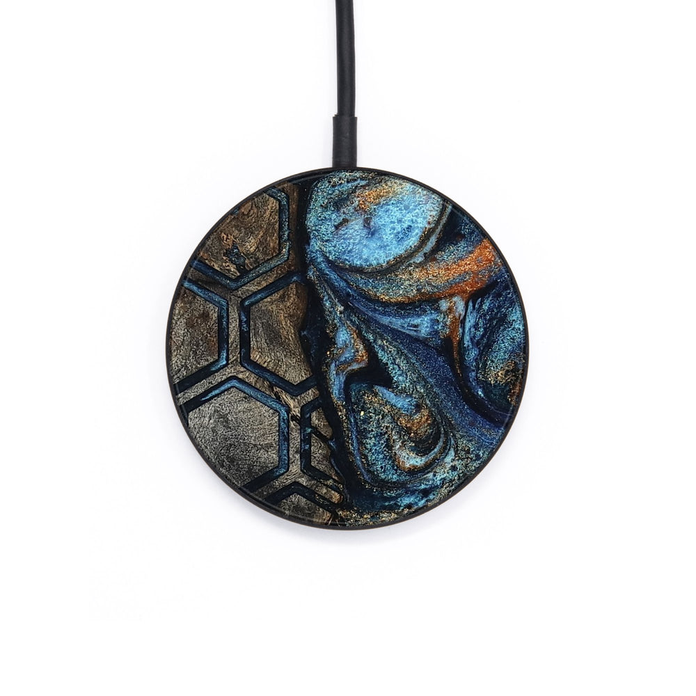 Perfectly simple, MagSafe compatible, USB-C, 1 of a kind Wireless Qi charger. CNC machined aluminum body. Every Wood+Resin inlay is unique and made at our shop in Elkhart, Indiana.