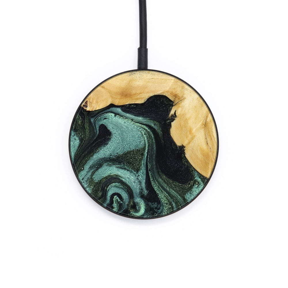 Perfectly simple, MagSafe compatible, USB-C, 1 of a kind Wireless Qi charger. CNC machined aluminum body. Every Wood+Resin inlay is unique and made at our shop in Elkhart, Indiana.