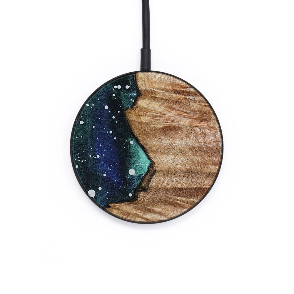 Perfectly simple, MagSafe compatible, USB-C, 1 of a kind Wireless Qi charger. CNC machined aluminum body. Every Wood+Resin inlay is unique and made at our shop in Elkhart, Indiana.