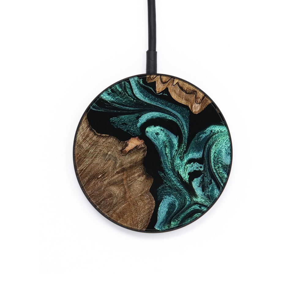 Perfectly simple, MagSafe compatible, USB-C, 1 of a kind Wireless Qi charger. CNC machined aluminum body. Every Wood+Resin inlay is unique and made at our shop in Elkhart, Indiana.