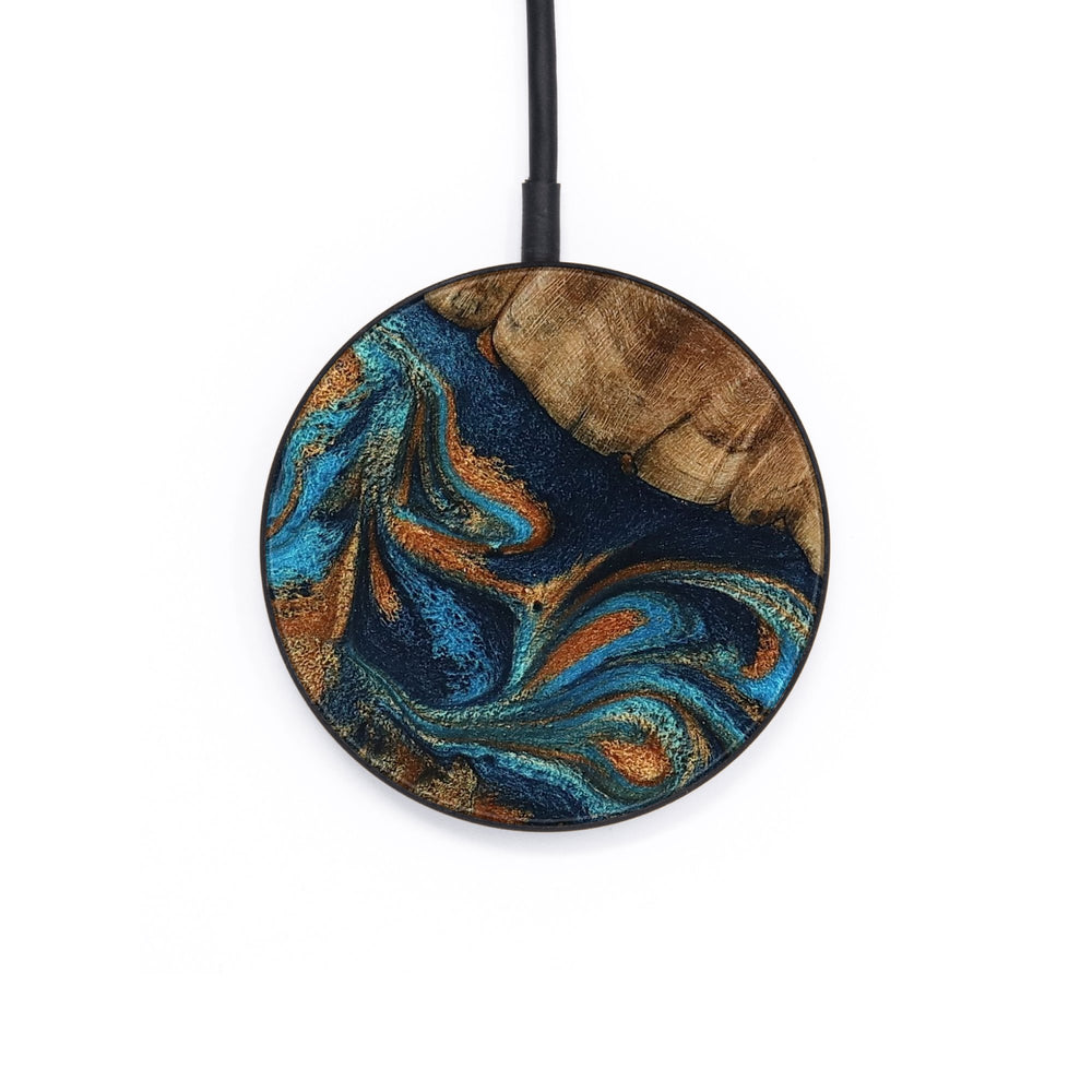 Perfectly simple, MagSafe compatible, USB-C, 1 of a kind Wireless Qi charger. CNC machined aluminum body. Every Wood+Resin inlay is unique and made at our shop in Elkhart, Indiana.