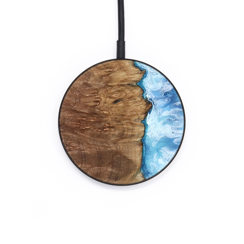Perfectly simple, MagSafe compatible, USB-C, 1 of a kind Wireless Qi charger. CNC machined aluminum body. Every Wood+Resin inlay is unique and made at our shop in Elkhart, Indiana.