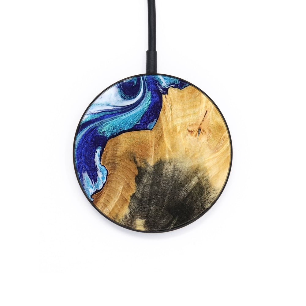 Perfectly simple, MagSafe compatible, USB-C, 1 of a kind Wireless Qi charger. CNC machined aluminum body. Every Wood+Resin inlay is unique and made at our shop in Elkhart, Indiana.