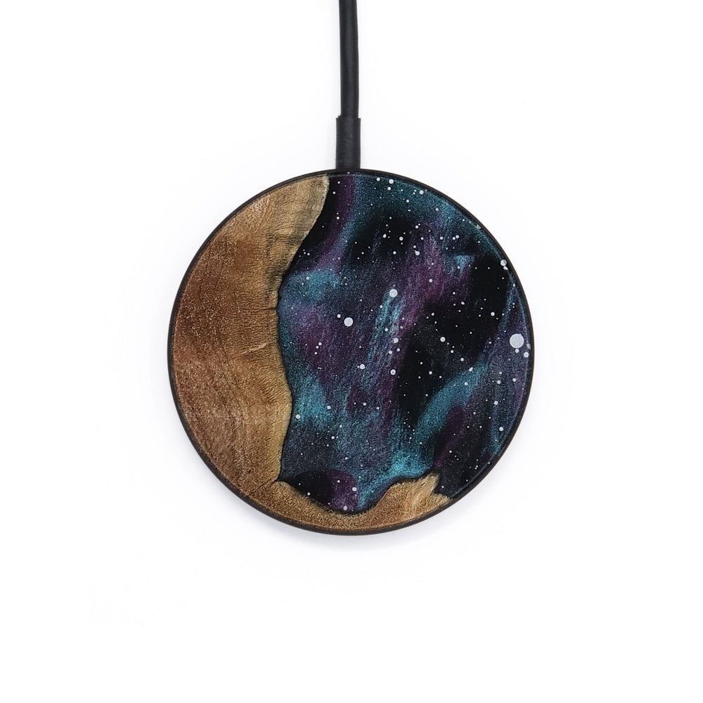 Perfectly simple, MagSafe compatible, USB-C, 1 of a kind Wireless Qi charger. CNC machined aluminum body. Every Wood+Resin inlay is unique and made at our shop in Elkhart, Indiana.
