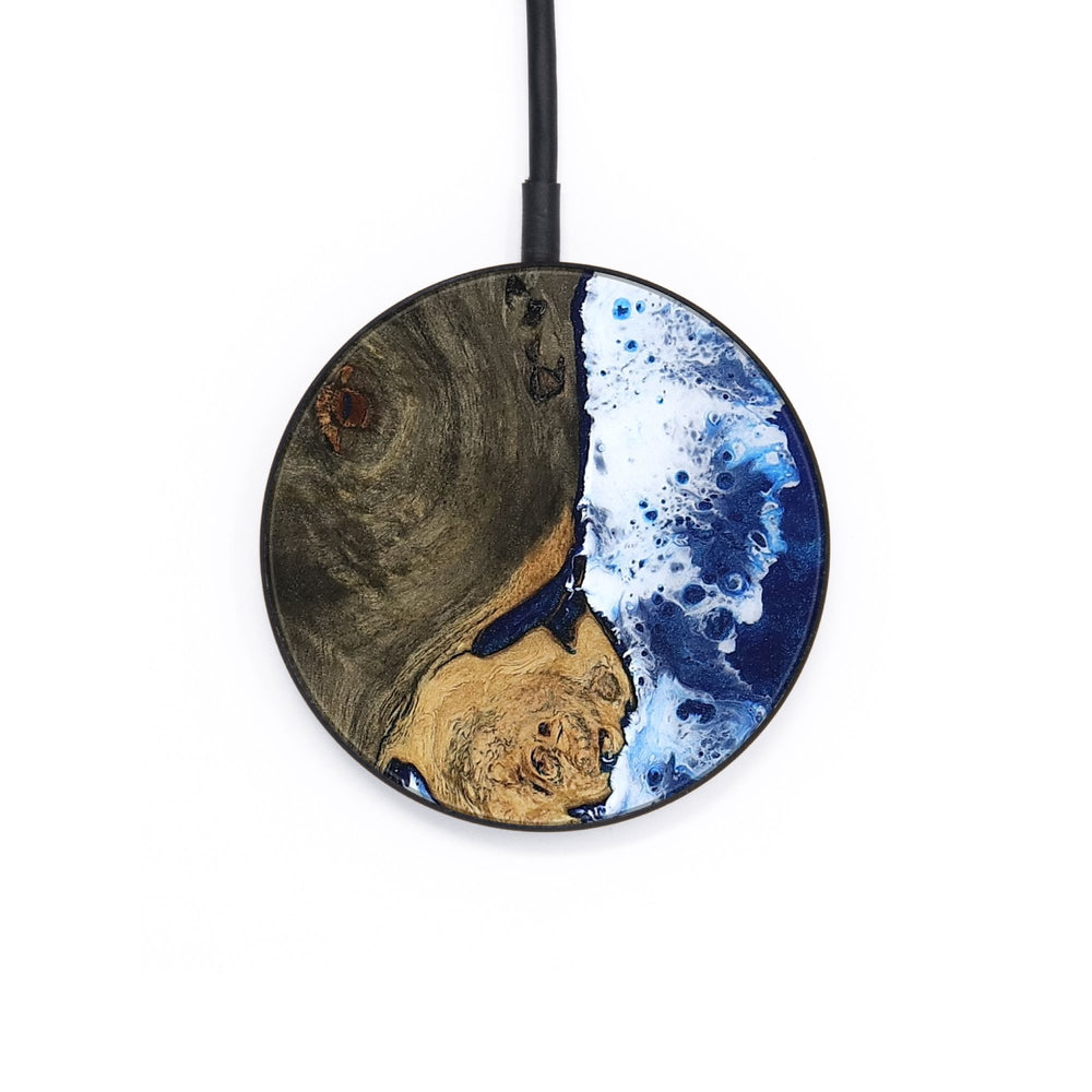 Perfectly simple, MagSafe compatible, USB-C, 1 of a kind Wireless Qi charger. CNC machined aluminum body. Every Wood+Resin inlay is unique and made at our shop in Elkhart, Indiana.