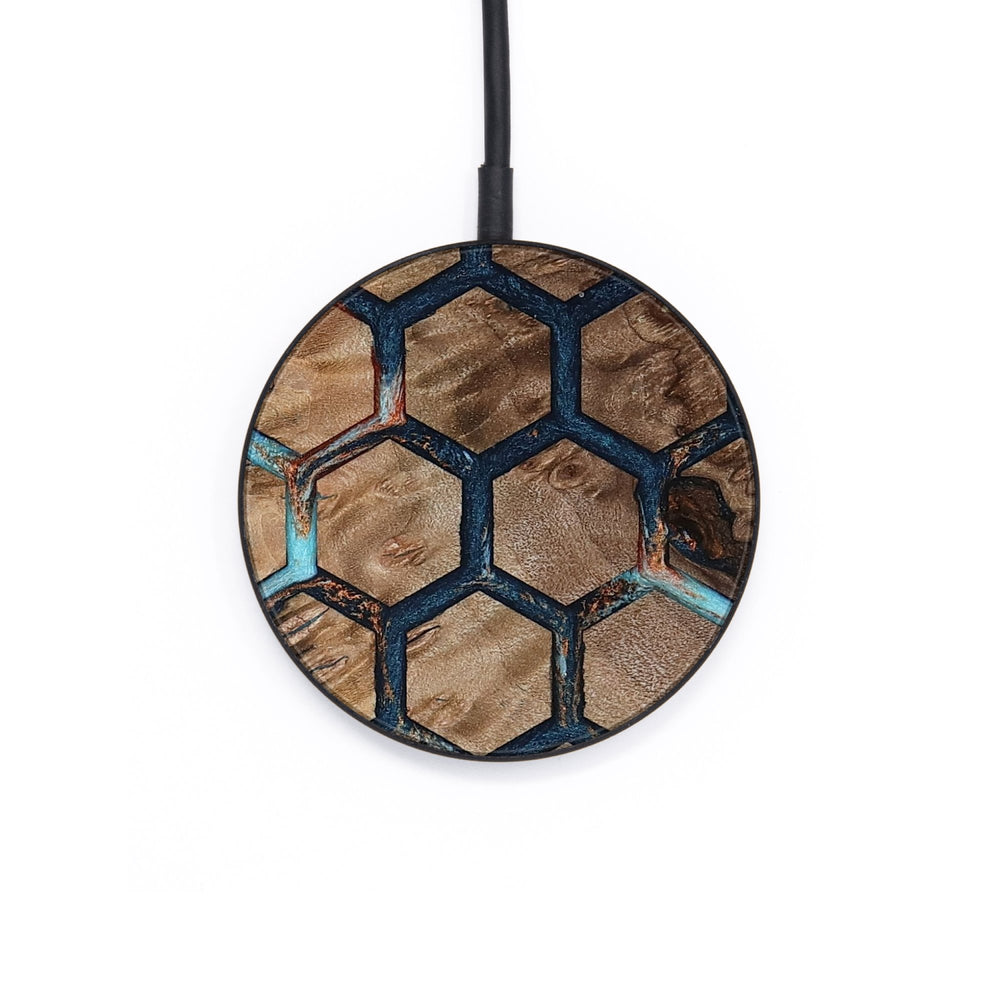 Perfectly simple, MagSafe compatible, USB-C, 1 of a kind Wireless Qi charger. CNC machined aluminum body. Every Wood+Resin inlay is unique and made at our shop in Elkhart, Indiana.