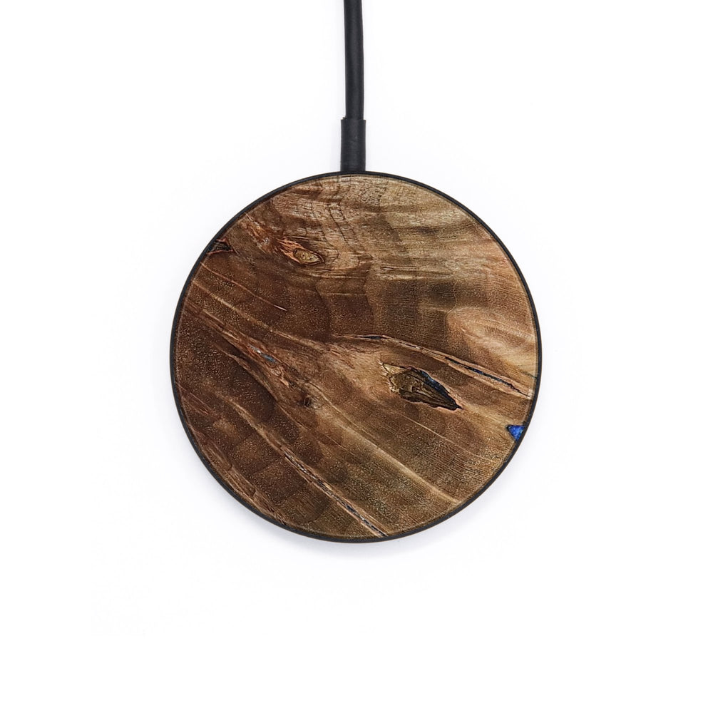 Perfectly simple, MagSafe compatible, USB-C, 1 of a kind Wireless Qi charger. CNC machined aluminum body. Every Wood+Resin inlay is unique and made at our shop in Elkhart, Indiana.