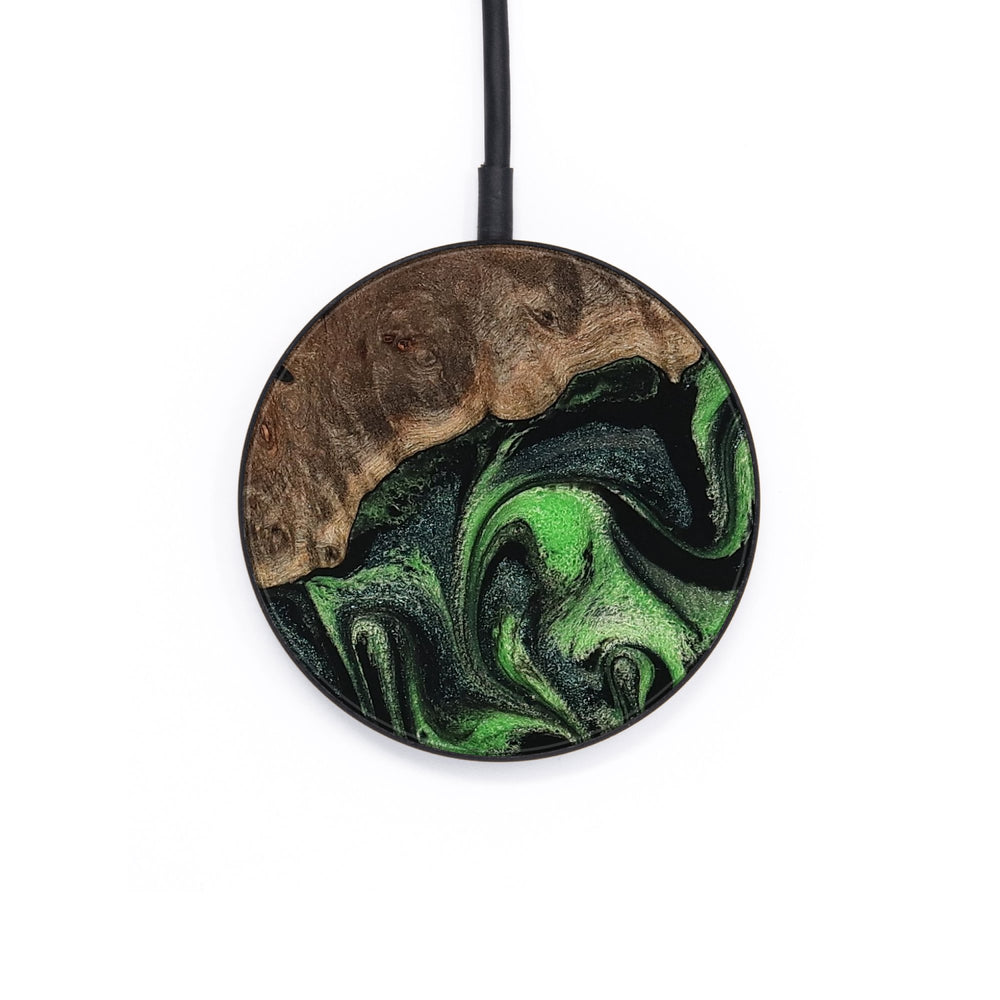 Perfectly simple, MagSafe compatible, USB-C, 1 of a kind Wireless Qi charger. CNC machined aluminum body. Every Wood+Resin inlay is unique and made at our shop in Elkhart, Indiana.
