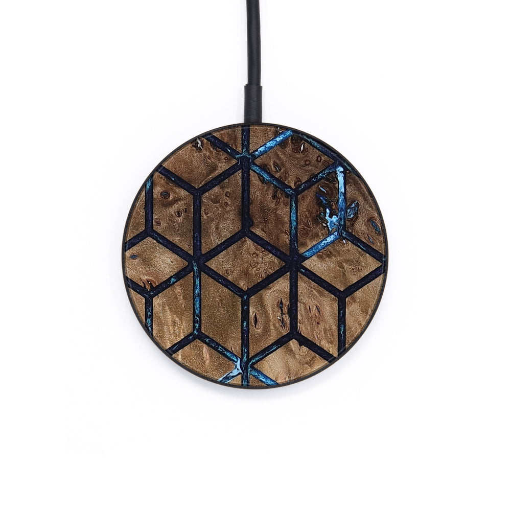 Perfectly simple, MagSafe compatible, USB-C, 1 of a kind Wireless Qi charger. CNC machined aluminum body. Every Wood+Resin inlay is unique and made at our shop in Elkhart, Indiana.