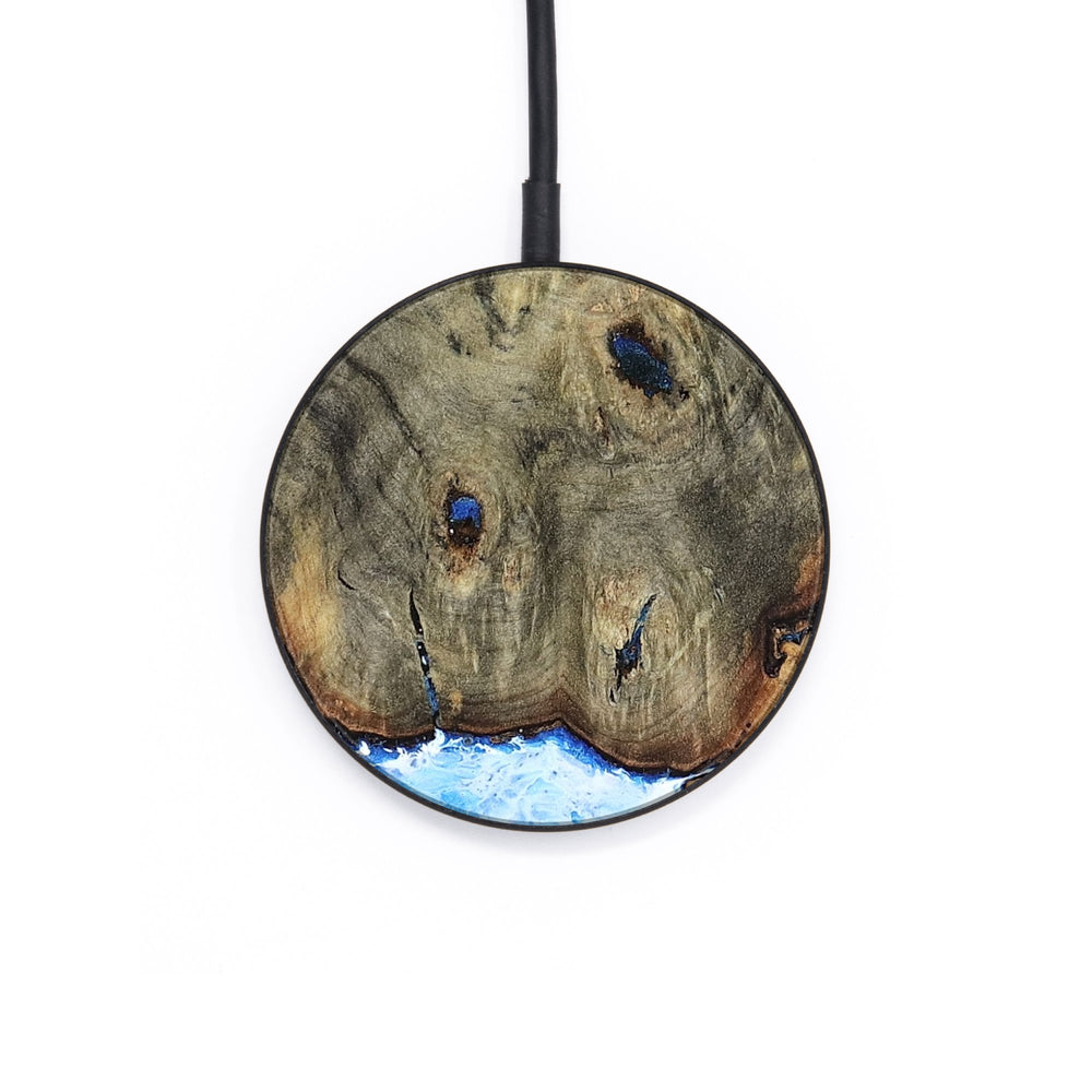 Perfectly simple, MagSafe compatible, USB-C, 1 of a kind Wireless Qi charger. CNC machined aluminum body. Every Wood+Resin inlay is unique and made at our shop in Elkhart, Indiana.