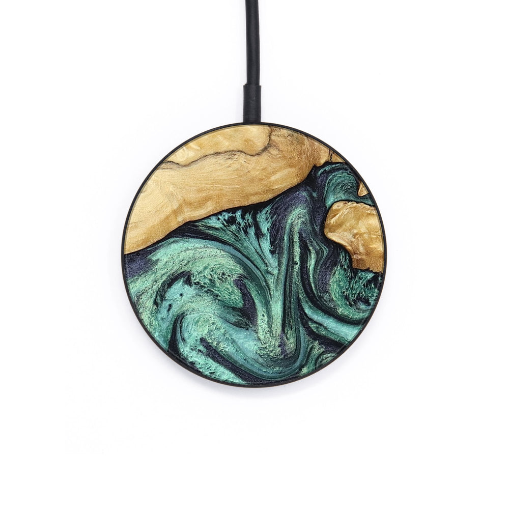 Perfectly simple, MagSafe compatible, USB-C, 1 of a kind Wireless Qi charger. CNC machined aluminum body. Every Wood+Resin inlay is unique and made at our shop in Elkhart, Indiana.