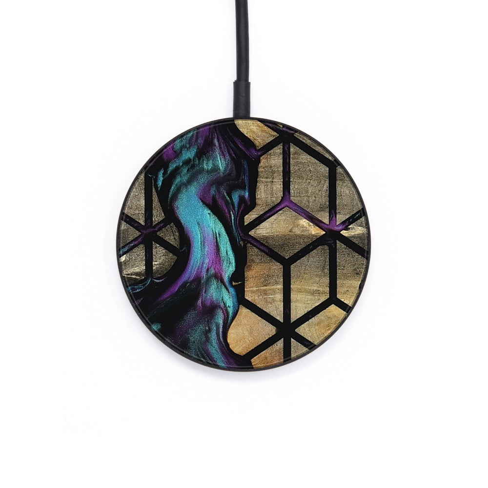 Perfectly simple, MagSafe compatible, USB-C, 1 of a kind Wireless Qi charger. CNC machined aluminum body. Every Wood+Resin inlay is unique and made at our shop in Elkhart, Indiana.