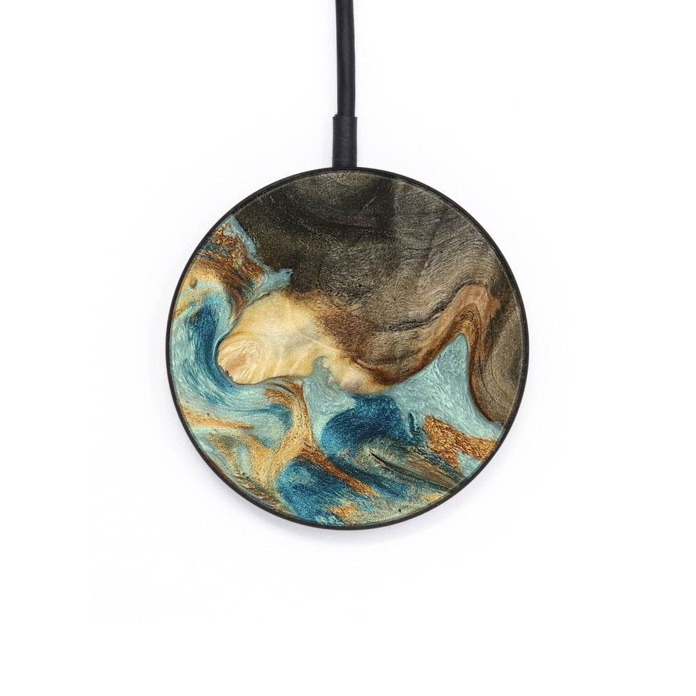 Perfectly simple, MagSafe compatible, USB-C, 1 of a kind Wireless Qi charger. CNC machined aluminum body. Every Wood+Resin inlay is unique and made at our shop in Elkhart, Indiana.