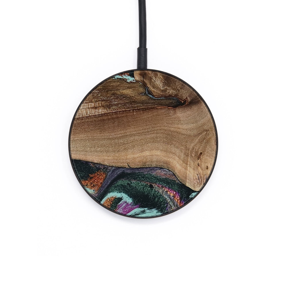 Perfectly simple, MagSafe compatible, USB-C, 1 of a kind Wireless Qi charger. CNC machined aluminum body. Every Wood+Resin inlay is unique and made at our shop in Elkhart, Indiana.