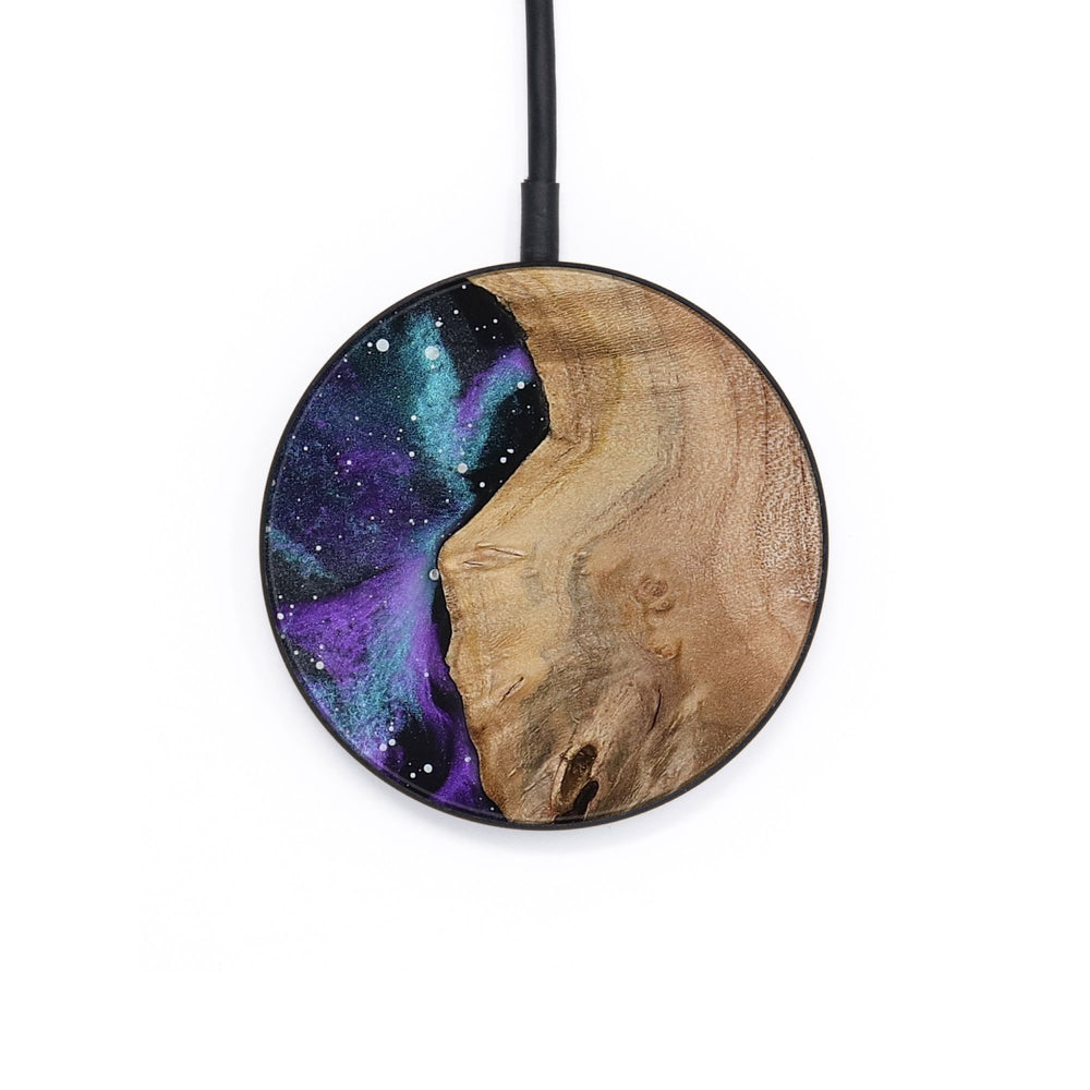 Perfectly simple, MagSafe compatible, USB-C, 1 of a kind Wireless Qi charger. CNC machined aluminum body. Every Wood+Resin inlay is unique and made at our shop in Elkhart, Indiana.