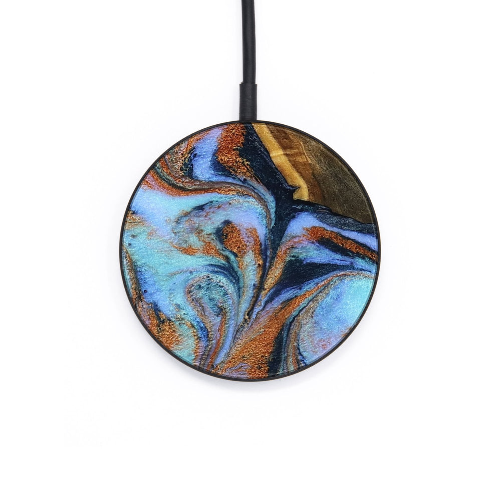 Perfectly simple, MagSafe compatible, USB-C, 1 of a kind Wireless Qi charger. CNC machined aluminum body. Every Wood+Resin inlay is unique and made at our shop in Elkhart, Indiana.