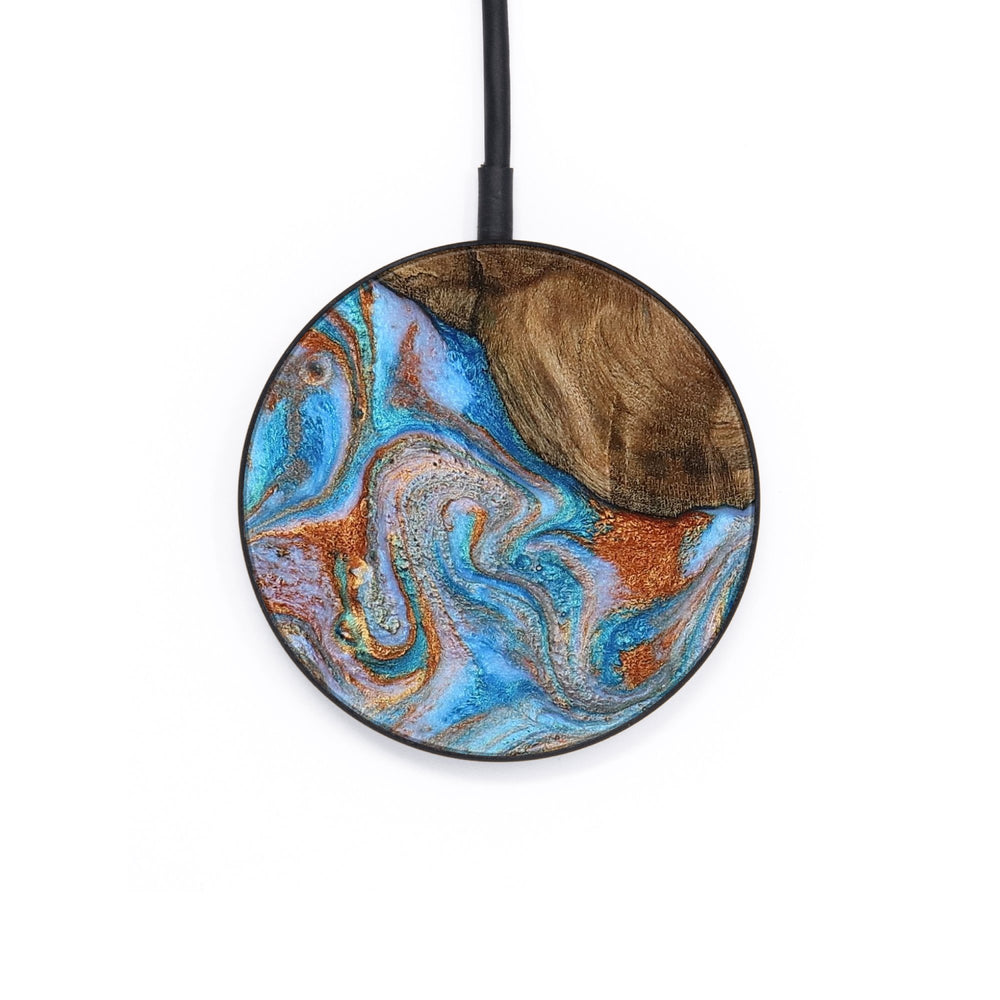 Perfectly simple, MagSafe compatible, USB-C, 1 of a kind Wireless Qi charger. CNC machined aluminum body. Every Wood+Resin inlay is unique and made at our shop in Elkhart, Indiana.