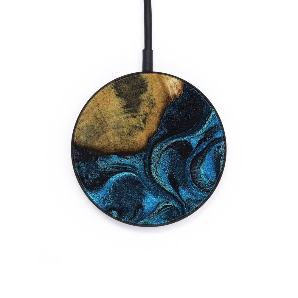Perfectly simple, MagSafe compatible, USB-C, 1 of a kind Wireless Qi charger. CNC machined aluminum body. Every Wood+Resin inlay is unique and made at our shop in Elkhart, Indiana.
