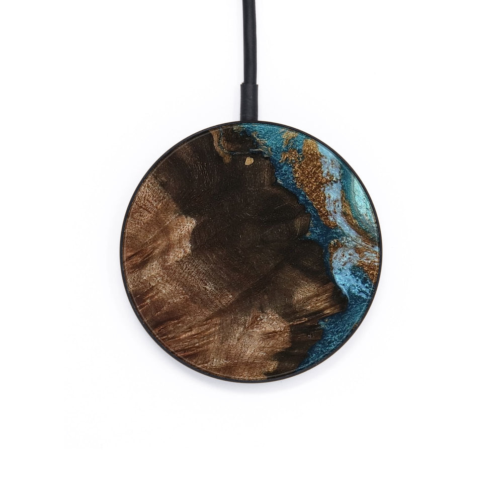 Perfectly simple, MagSafe compatible, USB-C, 1 of a kind Wireless Qi charger. CNC machined aluminum body. Every Wood+Resin inlay is unique and made at our shop in Elkhart, Indiana.
