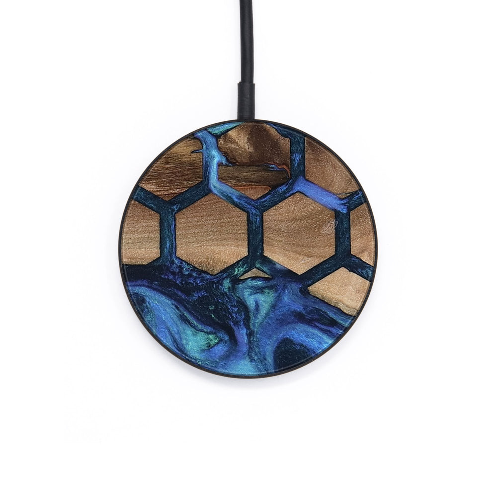 Perfectly simple, MagSafe compatible, USB-C, 1 of a kind Wireless Qi charger. CNC machined aluminum body. Every Wood+Resin inlay is unique and made at our shop in Elkhart, Indiana.