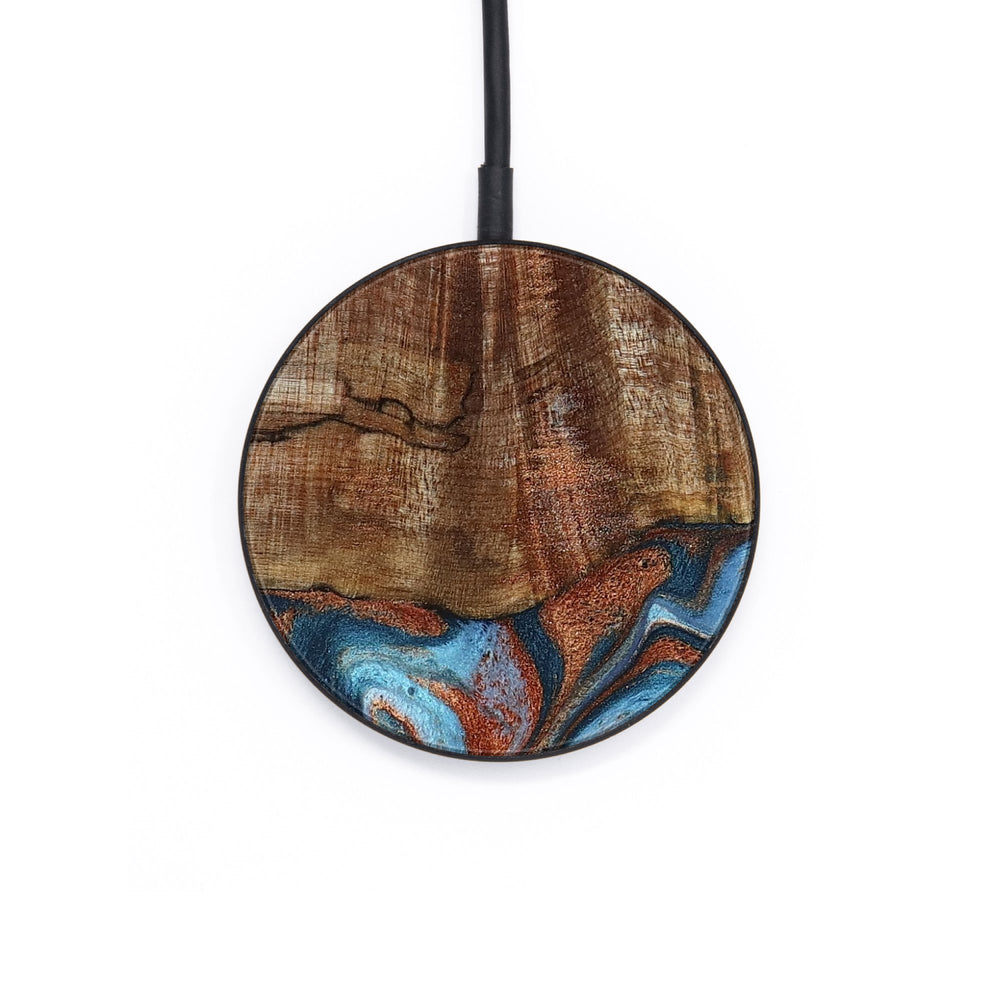 Perfectly simple, MagSafe compatible, USB-C, 1 of a kind Wireless Qi charger. CNC machined aluminum body. Every Wood+Resin inlay is unique and made at our shop in Elkhart, Indiana.
