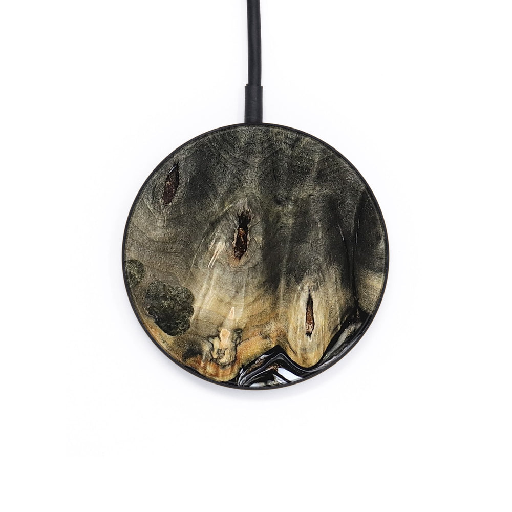 Perfectly simple, MagSafe compatible, USB-C, 1 of a kind Wireless Qi charger. CNC machined aluminum body. Every Wood+Resin inlay is unique and made at our shop in Elkhart, Indiana.