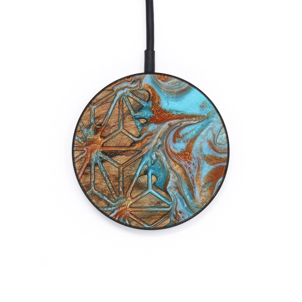 Perfectly simple, MagSafe compatible, USB-C, 1 of a kind Wireless Qi charger. CNC machined aluminum body. Every Wood+Resin inlay is unique and made at our shop in Elkhart, Indiana.