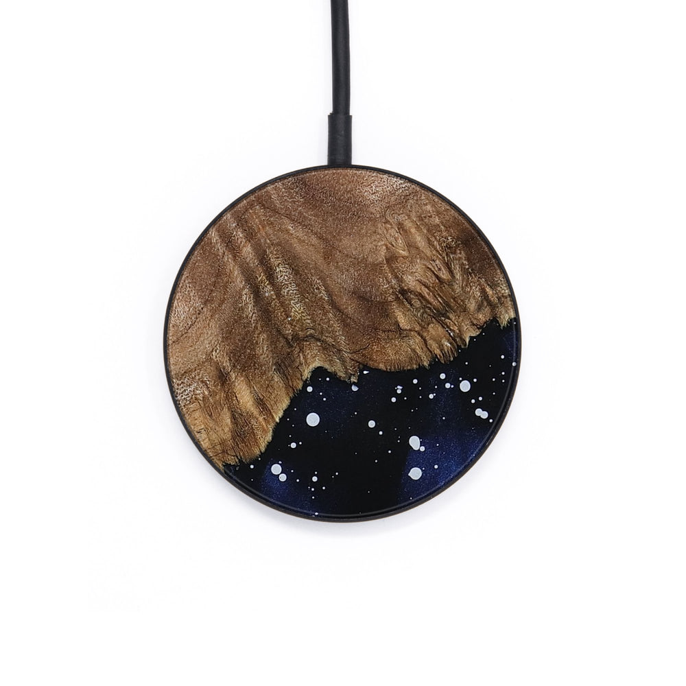Perfectly simple, MagSafe compatible, USB-C, 1 of a kind Wireless Qi charger. CNC machined aluminum body. Every Wood+Resin inlay is unique and made at our shop in Elkhart, Indiana.