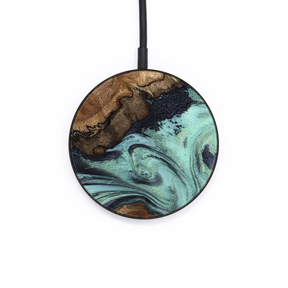 Perfectly simple, MagSafe compatible, USB-C, 1 of a kind Wireless Qi charger. CNC machined aluminum body. Every Wood+Resin inlay is unique and made at our shop in Elkhart, Indiana.