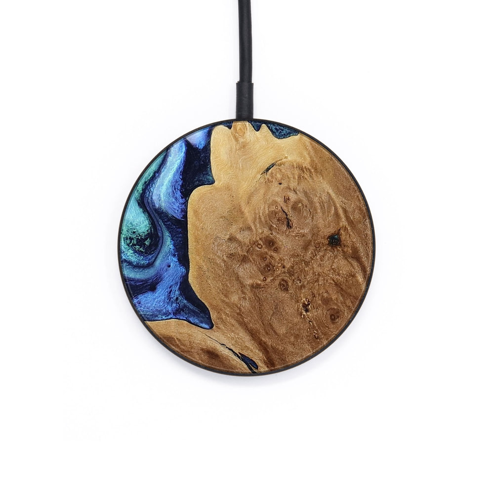 Perfectly simple, MagSafe compatible, USB-C, 1 of a kind Wireless Qi charger. CNC machined aluminum body. Every Wood+Resin inlay is unique and made at our shop in Elkhart, Indiana.