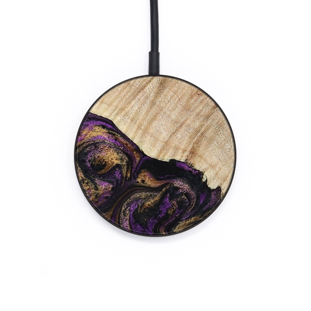 Perfectly simple, MagSafe compatible, USB-C, 1 of a kind Wireless Qi charger. CNC machined aluminum body. Every Wood+Resin inlay is unique and made at our shop in Elkhart, Indiana.