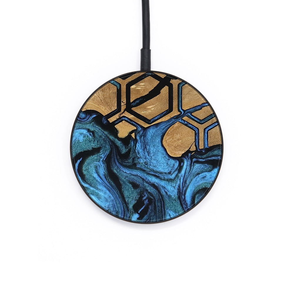 Perfectly simple, MagSafe compatible, USB-C, 1 of a kind Wireless Qi charger. CNC machined aluminum body. Every Wood+Resin inlay is unique and made at our shop in Elkhart, Indiana.