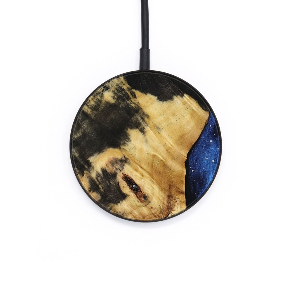 Perfectly simple, MagSafe compatible, USB-C, 1 of a kind Wireless Qi charger. CNC machined aluminum body. Every Wood+Resin inlay is unique and made at our shop in Elkhart, Indiana.