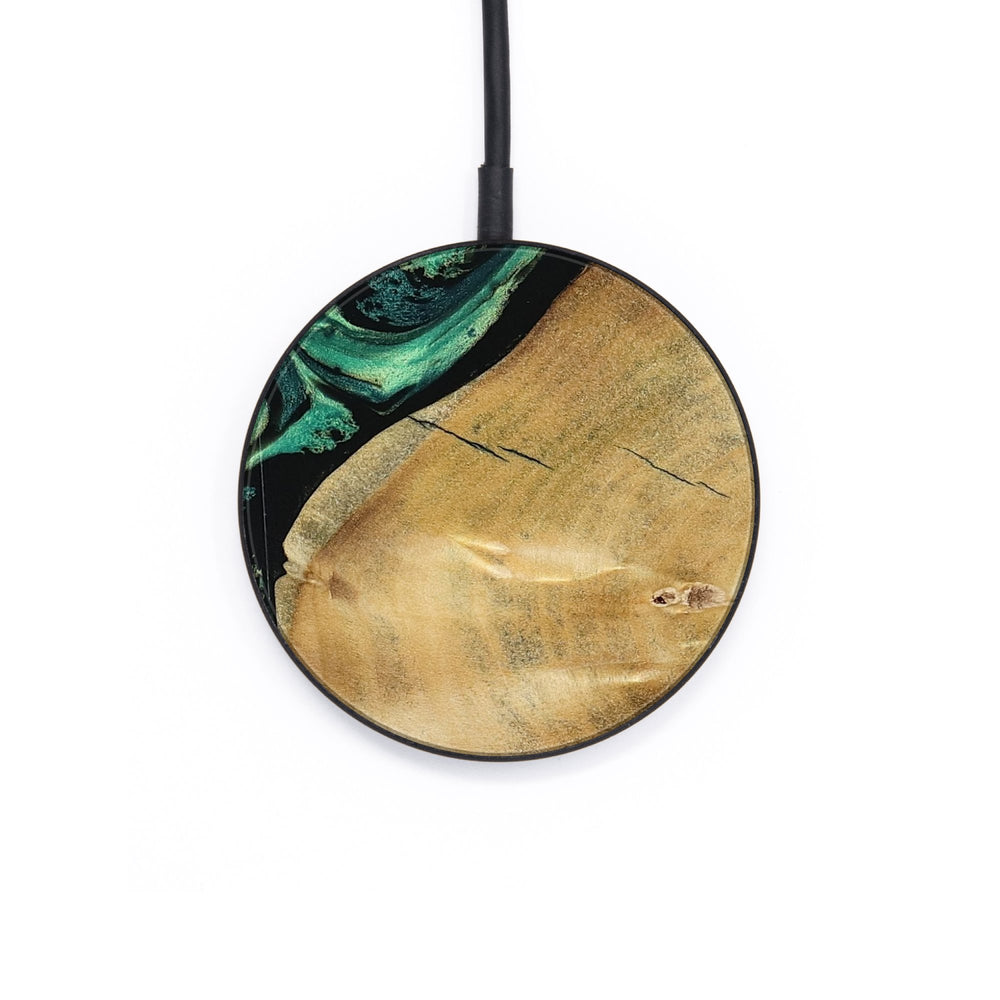Perfectly simple, MagSafe compatible, USB-C, 1 of a kind Wireless Qi charger. CNC machined aluminum body. Every Wood+Resin inlay is unique and made at our shop in Elkhart, Indiana.