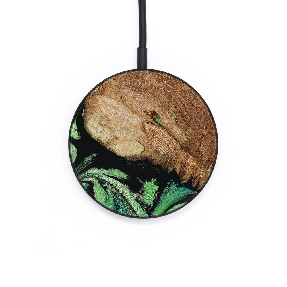 Perfectly simple, MagSafe compatible, USB-C, 1 of a kind Wireless Qi charger. CNC machined aluminum body. Every Wood+Resin inlay is unique and made at our shop in Elkhart, Indiana.